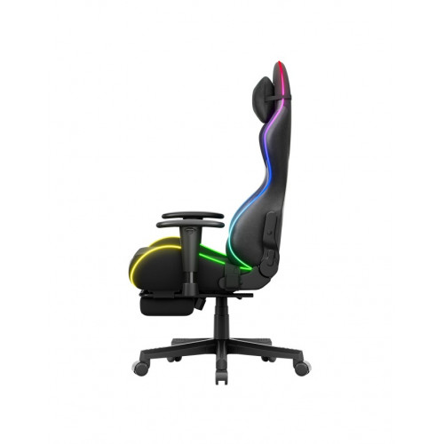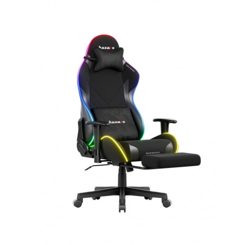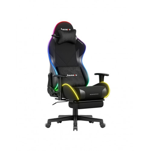 Dynamic LED-RGB lighting turns an ordinary desk into a battlefield and the room into a command center. Your chair, your ambience, your style. Energy-saving lighting – powered directly by a power bank. Comfortable control – with a wireless remote.